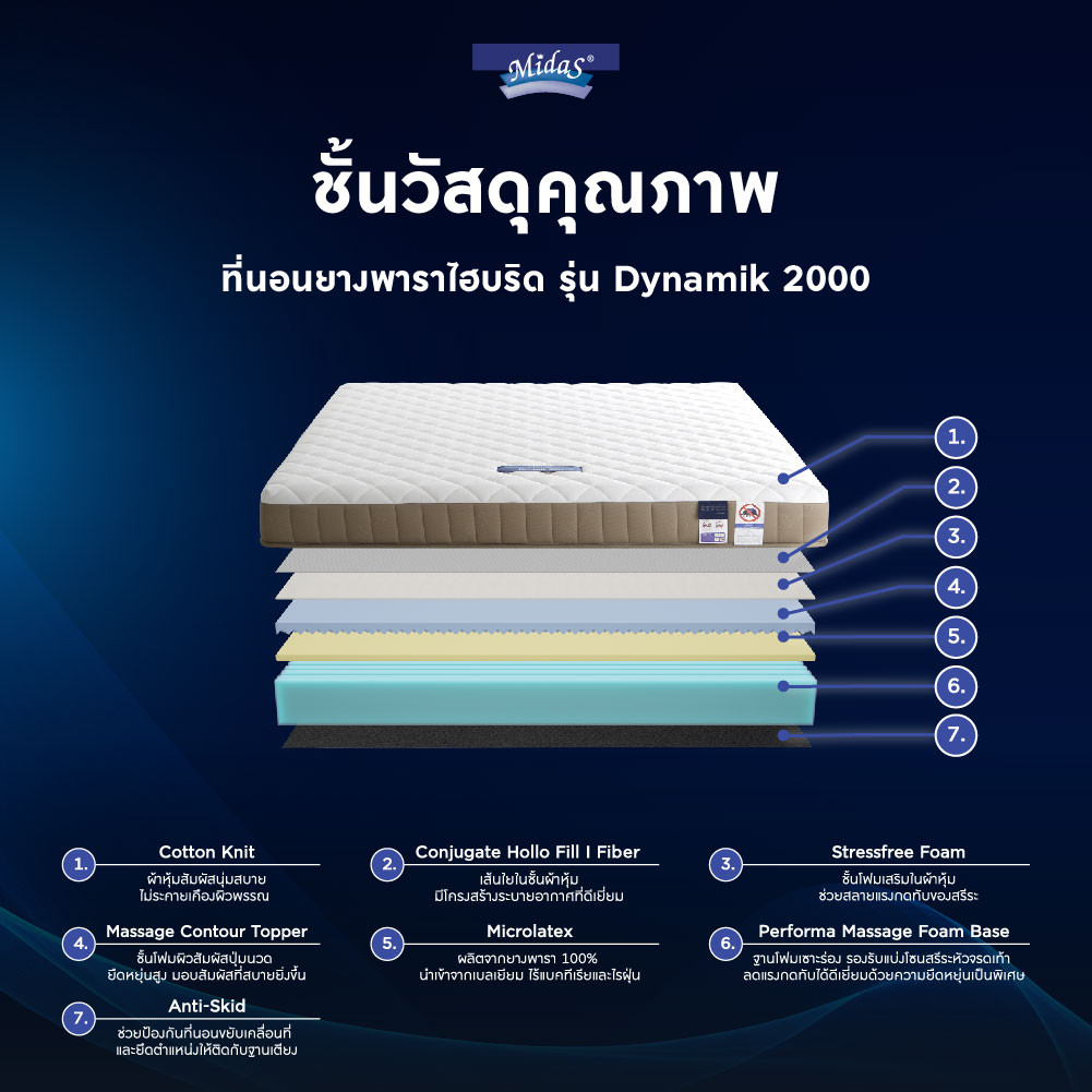 Microlatex, natural rubber through a special compression process (Micro compression) from Belgium with Opened-Cell structure system, the copyright of Lotus mattresses allows ventilation. So you can feel the coolness. Free from dust mites and bacteria and It has been tested to provide an extremely high ILD (rebound value). Help average body weight to be distributed over the surface area. Do not press over at any point.