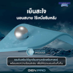 เสริมด้วย Cooling Foam โฟมที่ช่วยลดความร้อนสะสมด้วยคุณสมบัติระบายอากาศ ทำให้นอนแล้วรู้สึกถึงความเย็นยิ่งขึ้น ทั้งมีสัมผัสนุ่มแน่นพอดี ซึ่งช่วยสลายแรงกดทับให้ระบบไหลเวียนโลหิตทำงานได้สะดวก ให้คุณหลับลึก รู้สึกสบาย และมีสุขภาพที่ดี
