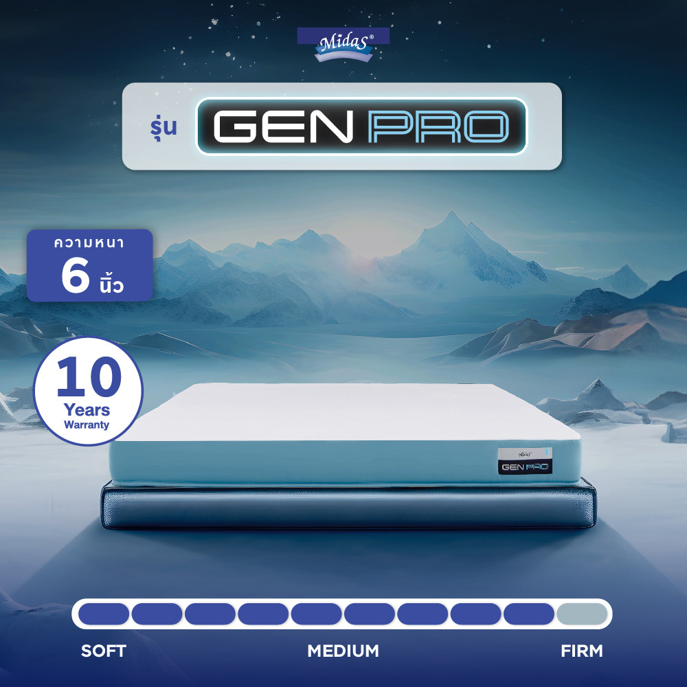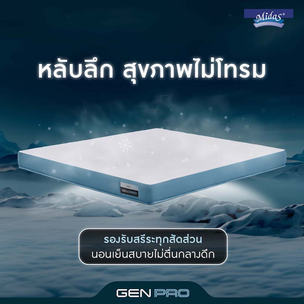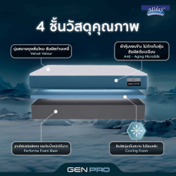ผ่อนคลายมากยิ่งขึ้นด้วยการเสริมชั้นที่เพิ่มความสบายของ ที่นอน MIDAS รุ่น Genpro มอบการรองรับน้ำหนักด้วย Performa Foam Base ฐานโฟมที่เหมาะกับทุกท่านอนเพราะมีความยืดหยุ่นและสมดุลในการรับน้ำหนัก ทั้งช่วยจัดแนวกระดูกสันหลังให้เป็นเส้นตรง ลดอาการปวดหลัง