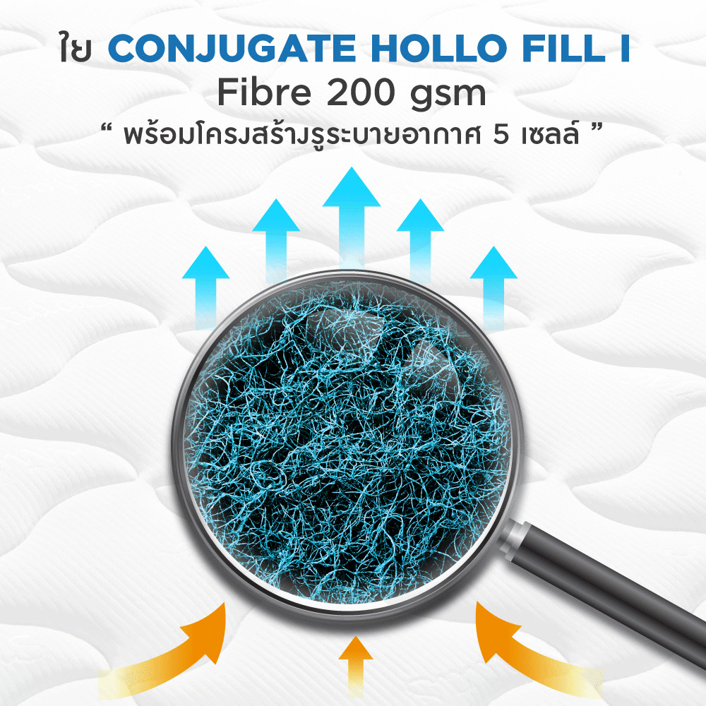 - ใย Conjugate Hollo Fill I Fibre 200 gsm พร้อมโครงสร้างรูระบายอากาศ 5 เซลล์