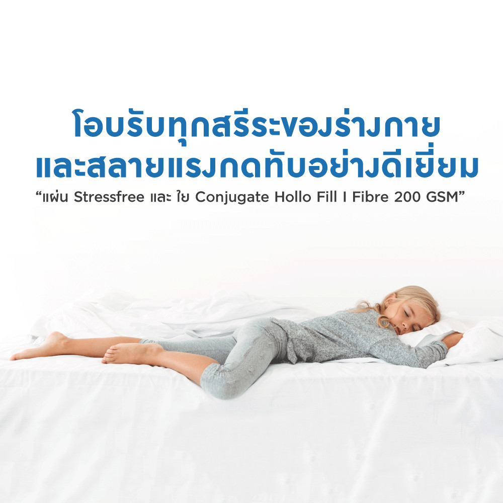 - แผ่นคอตตอนใยฝ้ายอัดแน่น ECCP 2 ชั้น เสริมด้านบนและด้านล่างด้วยระบบสปริงรองรับน้ำหนัก เพื่อช่วยเสริมความแข็งแรง แต่คงไว้ซึ่งความนุ่มนวลในทุกการเคลื่อนไหวของลูกสปริง