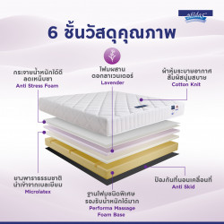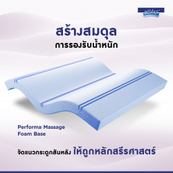 - Performa Massage Foam Base โฟมที่มีพื้นผิวสัมผัสพิเศษ ช่วยสร้างสมดุลในการรองรับน้ำหนักได้ดียิ่งขึ้น ช่วนจัดแนวกระดูกสันหลังให้ถูกสุขลักษณะตามหลักสรีระศาสตร์การนอน มีความนุ่มแน่นที่เหมาะสม สมดุลในทุกท่วงท่าของการนอน