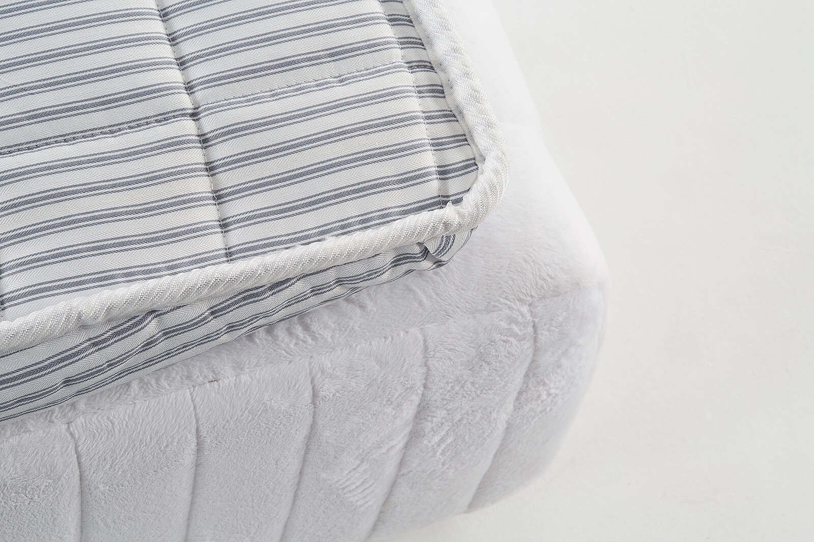• หุ้มด้วยเนื้อผ้าลายริ้วเทาเกรดพรีเมี่ยม นุ่มสบาย